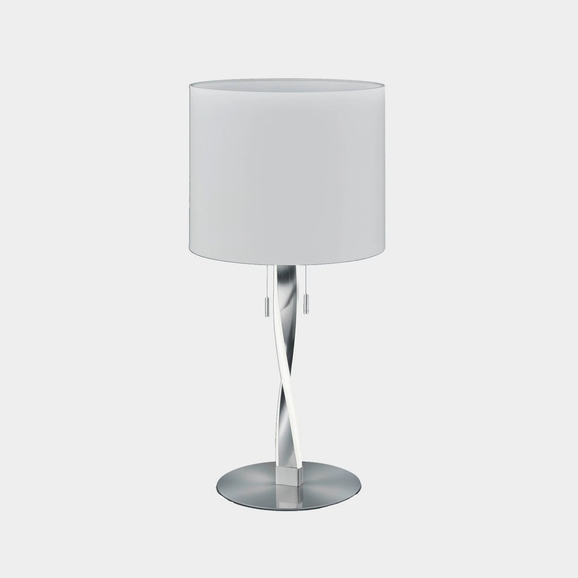 Bring a touch of modern sophistication to your home with the Twin LED Table Lamp, an elegant solution that seamlessly blends distinctive style with practical lighting. The soft satin chrome base features two integrated LED strips that twist gracefully around its structure, ensuring your décor is elevated with both contemporary flair and gentle illumination. The lamp is topped with a crisp white cotton shade, casting a warm, inviting glow ideal for any room in the house.